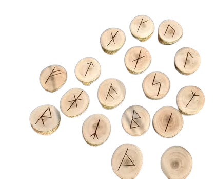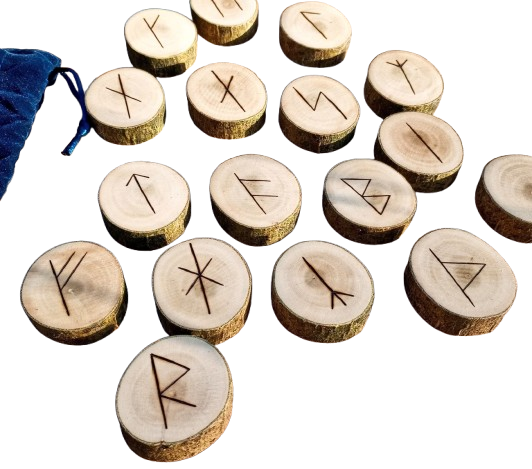 Runes made from Birch & Oak wood, with the runes burnt into the interior surface.