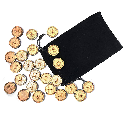 Our Elder Futhark Wood Rune Set contains 24 beautifully carved traditional wooden runes plus the blank rune.